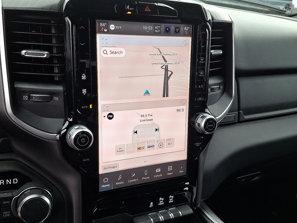 The HEMI V8 engine delivers exceptional power and performance, with the added efficiency of eTorque technology. Paired with the smooth-shifting 8-speed automatic transmission and capable 4WD system, this Ram 1500 is ready to tackle any job or adventure. The advanced technology features, including the large 12-inch touchscreen display and seamless smartphone integration, keep you connected and in control.